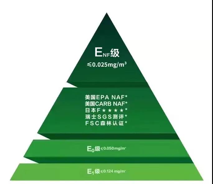 此次全新ENF级标准,比此前CARB-NAF标准的甲醛规定值还低了一半,打破了国际标准高于国内标准的惯例,成为目前全球最严苛环保标准,位于环保等级金字塔尖。