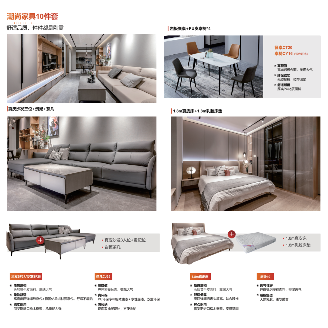 三是超实用不拼凑:与其他品牌不同,抖圈的配套产品都是臻选高颜高品质的刚需品产品,同时更注重实用性;如5㎡背景墙,能满足常规户型中一面墙的装修需求,且免费升级新品硬包护墙板,含17种流行花色任选,板材安全又环保;再如真皮沙发、岩板茶几、岩板餐桌、PU皮餐椅、1.8米真皮大床配1.8米乳胶床垫等10件品质与格调兼具的家具,不仅切合消费者实际需求,且每件物品都是家居空间必需品。