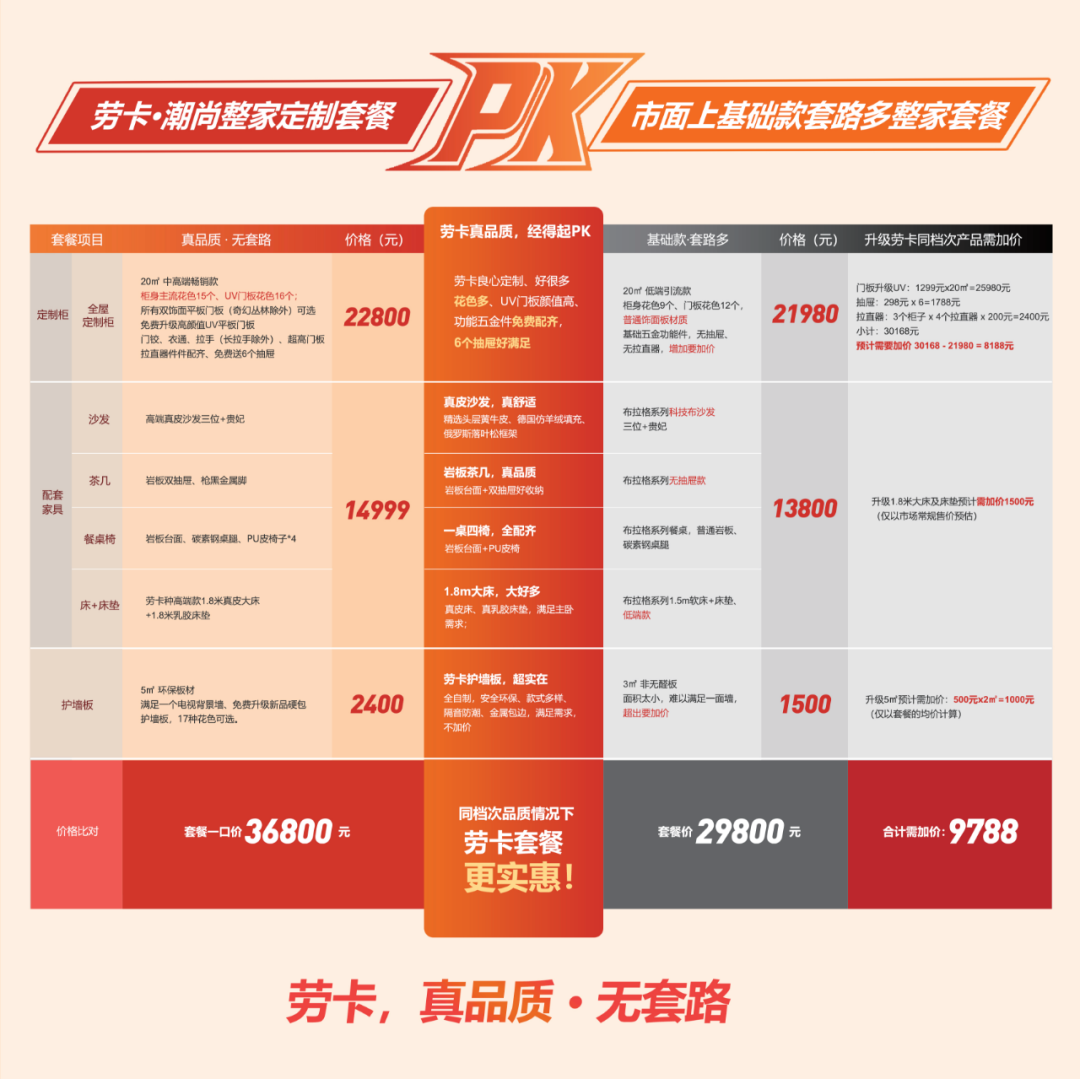 与部分套餐相比,抖圈的整家套餐着实是为消费者倾力打造的,在品质与功能上就超越众多企业,如套餐以低质、低价产品组合而成,附加品可有可无、刚需品不足、升级扩宽需加价等,反之,抖圈的套餐内配套家具均是高颜、高质的刚需品,能满足基本需求,产品免费升级、配件免费配齐。不得不说,抖圈的营销手段非同一般,其高明之处就在于,无需套路就能为消费者创造差异化的购物体验之时又能牢牢抓住其家装心理。